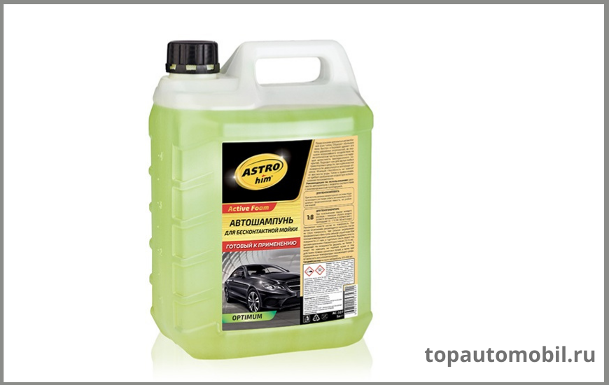 Автошампунь Optimum от бренда Astrohim фасуется в готовом для использования состоянии. При нанесении формируется плотная пена, медленно стекающая по вертикальным поверхностям.