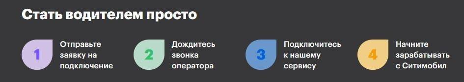 Ситимобил предлагает следующие условия работы для водителей: