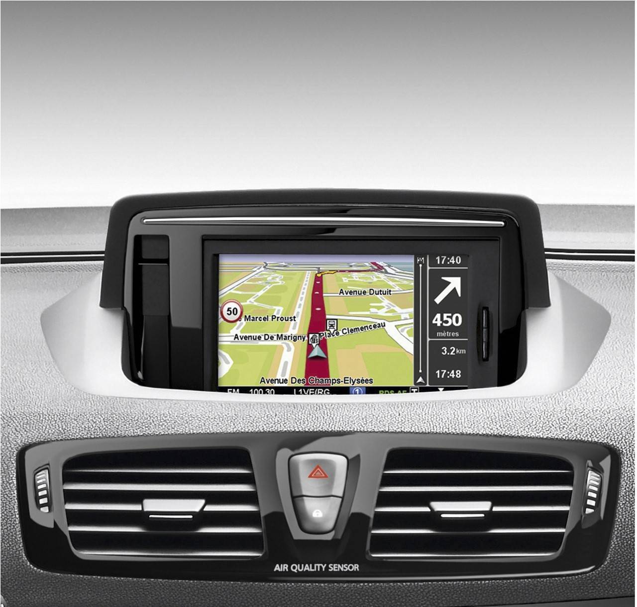 На основе этих данных система вычисляет и показывает всю возможную информацию. В один и тот же момент времени на экране системы по умолчанию отображается карта с курсором-автомобилем, расстояние до следующего дорожного знака и доступная информация о его содержании. Также отображается расстояние до следующего поворота и его направление, часы и расчетное время прибытия на заданную конечную точку маршрута.