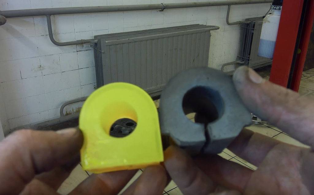 После поиска источников скрипа выясняется, что виной всему резинки стабилизатора поперечной устойчивости. Вернее, виноват сам материал, из которого они изготавливаются.