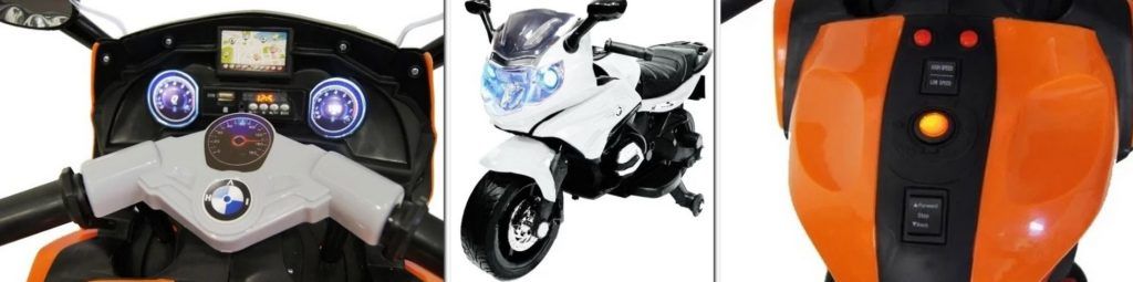 Модель данного транспорта подойдёт детям от 2 до 3 лет. Этот мини мотоцикл позволит малыша научить основам езды. Конструкция оснащена множеством функций: задним ходом, переключением передач, возможностью слушать музыку с помощью MP3 или через флешку (предусмотрены порты USB и MicroSD). Зеркала заднего вида помогут ребёнку ориентироваться за потоком транспорта, и учится избегать ДТП – всё это в игровой форме. Подсветка фар позволяет перемещаться в тёмное время.