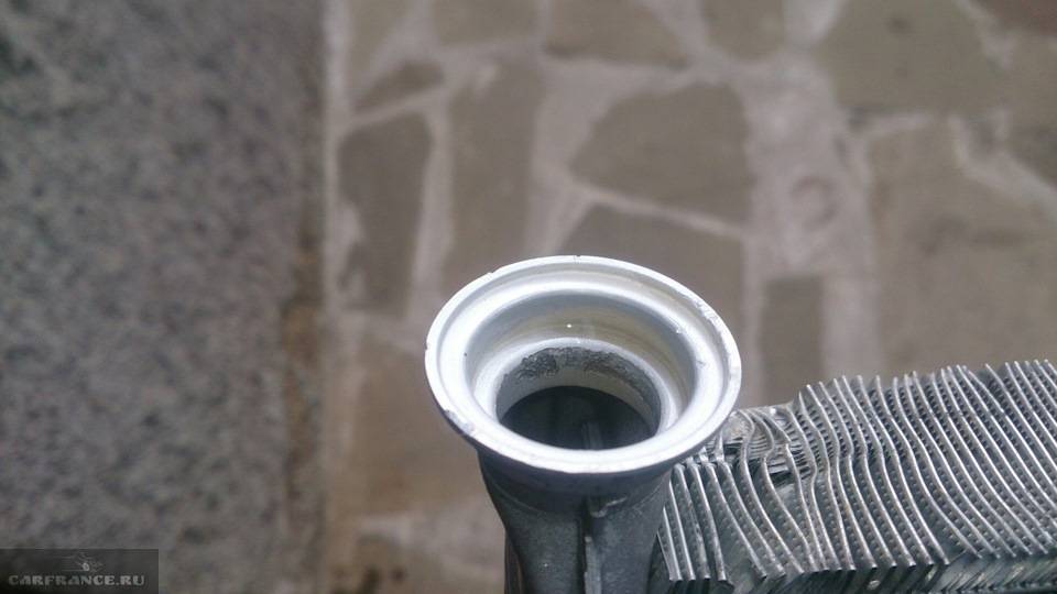 Для этого необходим слив антифриза, демонтаж и промывка радиатора. Добраться до него несложно через снятую накладку возле педали газа. После снятия радиатора отопителя его продувают сжатым воздухам, промывают специальными средствами для снятия накипи при одновременном нагревании термофеном. После нескольких циклов промывки в радиатор должно помещаться не менее 100 мл жидкости, а воздух проходить свободно.