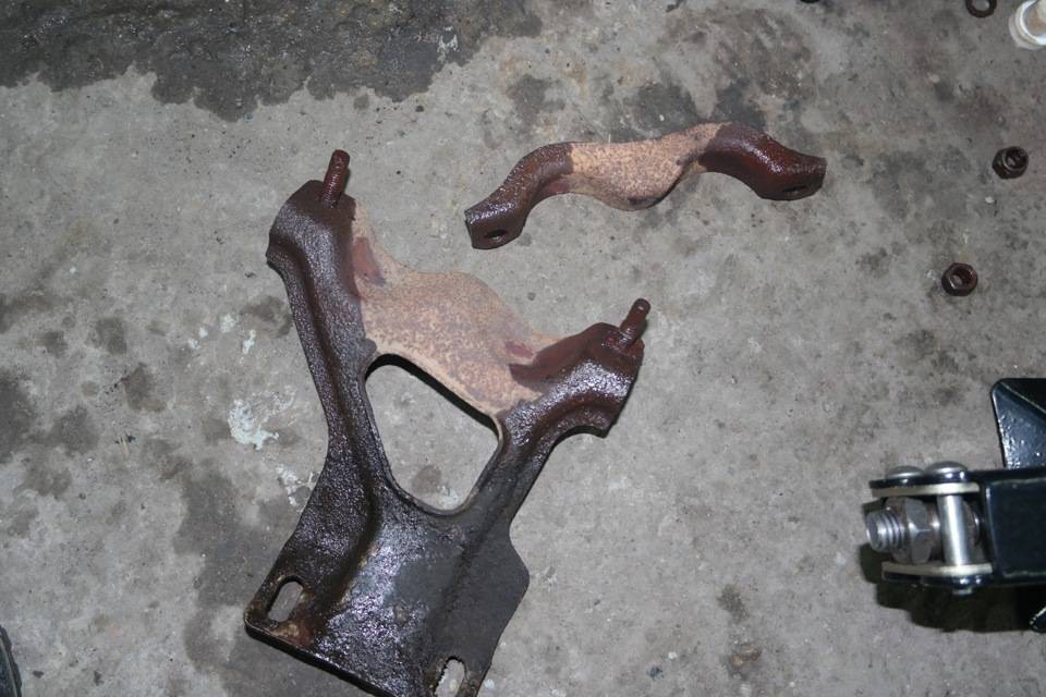 Теперь снимаем держатель штанов (не знаю как он правильно называется). Он состоит из двух частей — скобы и самого держателя. Ключом на «13» отворачиваем две гайки крепления скобы.