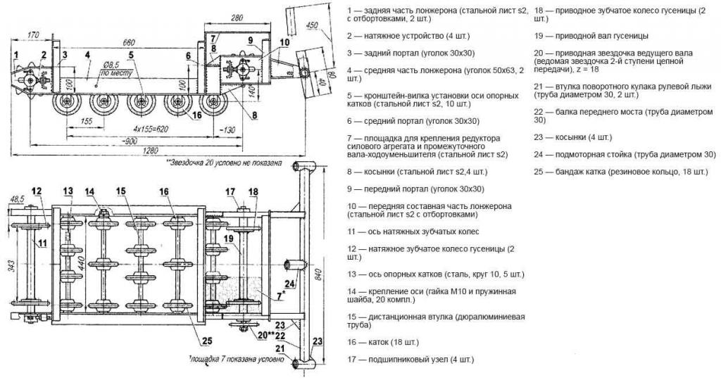 Очень важно изучить чертежи. С их помощью определяется порядок монтирования элементов снегохода