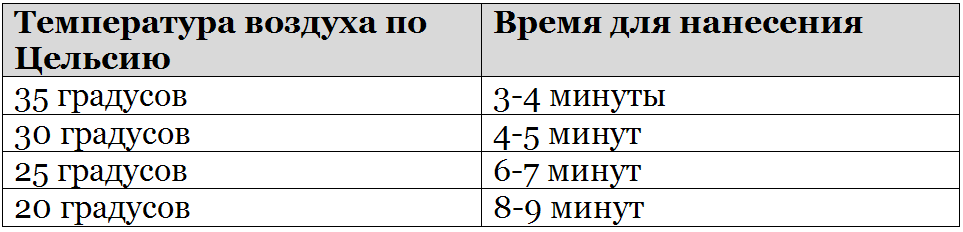 Помните , что вам следует выполнить операцию за определенный срок, иначе состав примет твердую форму и нанести его вряд ли получится. Это время, в среднем, составляет от 4 до 6 минут.