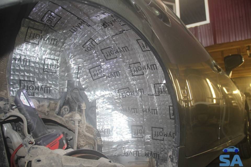 В области колесных арок концентрируется максимум звуков от работающего двигателя, взаимодействующих с дорожным покрытием шин. Чтобы оградить от внешнего шума внутреннее пространство салона, многие современные производители усиливают эти зоны специальными слоями.