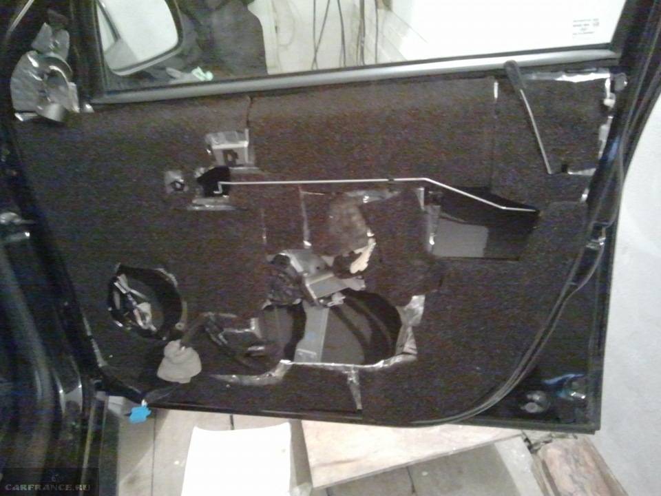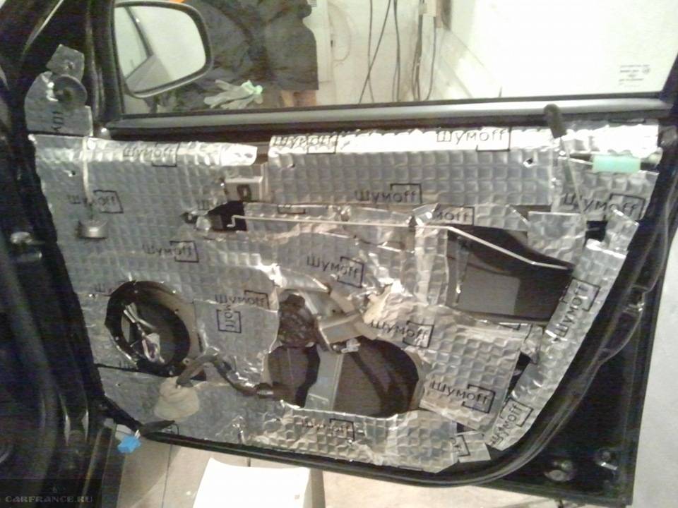 Двери наиболее подверженный шуму элемент, поскольку всё, что вылетает с передних колес, попадает именно сюда. Все грязь и твердые предметы ударяются о каркас, что создает посторонние звуки. Для того, чтобы установить шумку придется разобрать дверь. Как это сделать? Рассмотрим процесс: