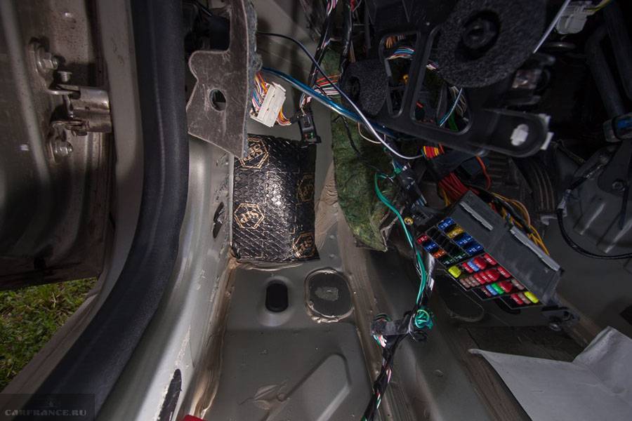 - Оклеиваем шумоизоляцию под педалями и месте для ног пассажира.