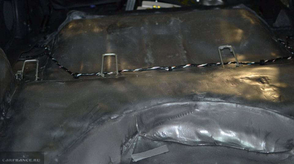 Нанесение виброизоляции под обивку багажника
