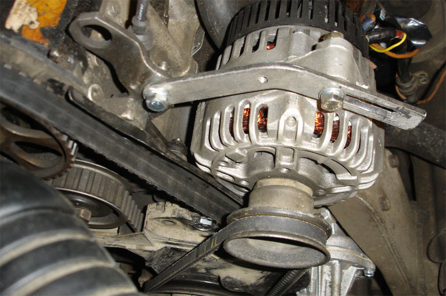 В автомобилях 80-х годов регулирование натяжения часто производилось изменением геометрического положения генератора. В этом случае одна сторона генератора закреплялась стационарно. Второе крепление имело паз.