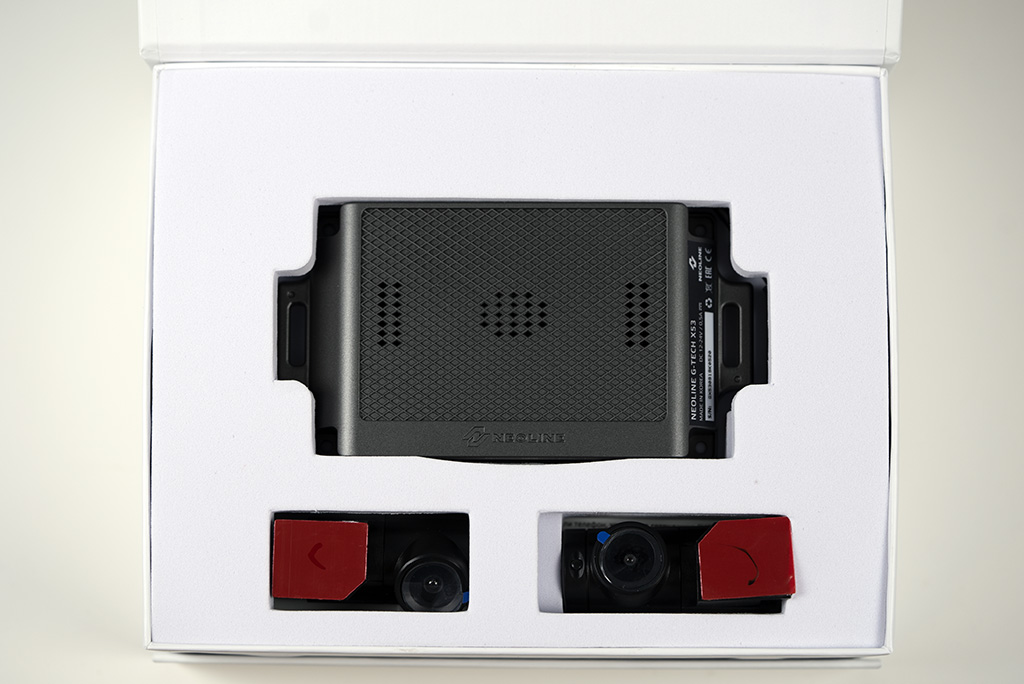 Так вот, основная фишка NEOLINE G-TECH X53 в том, что его не нужно каждый раз забирать с собой из салона. В комплекте идут сразу передняя и задняя камеры, которые максимально незаметно крепятся один раз и навсегда – одна на лобовое стекло рядом с зеркалом заднего вида, вторая на заднее стекло.