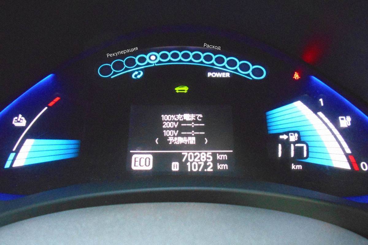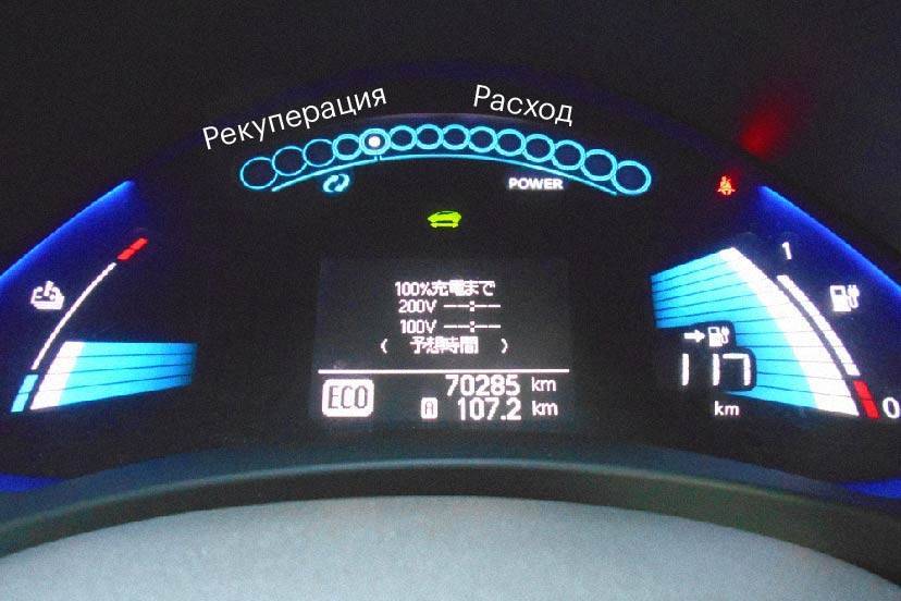 На приборной панели левая часть верхней шкалы — рекуперация и заряд батареи, правая — увеличение мощности