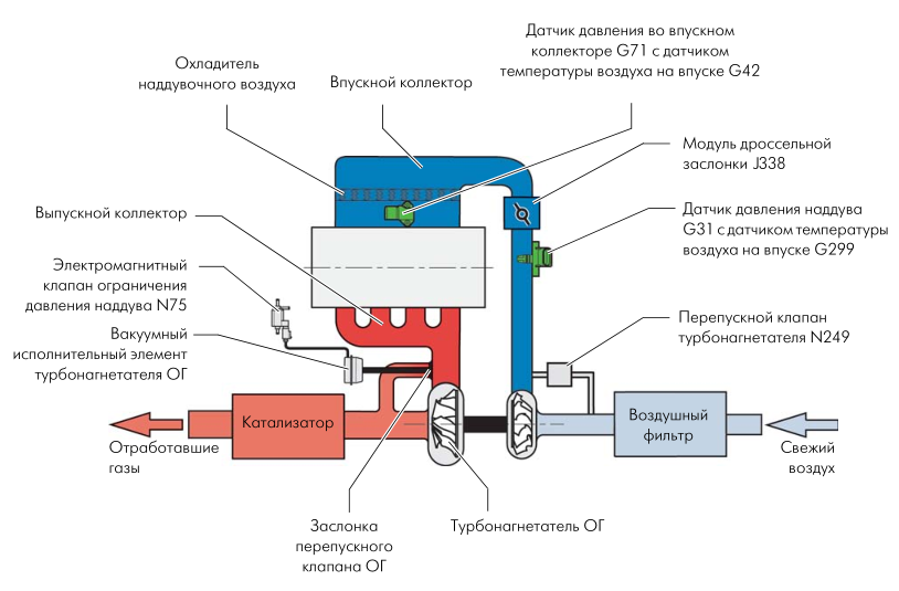 Схема наддува турбонагнетателем