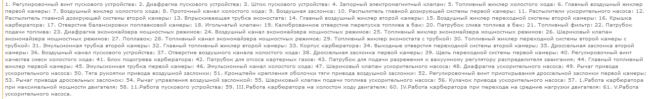 Детали карбюратора автомобиля