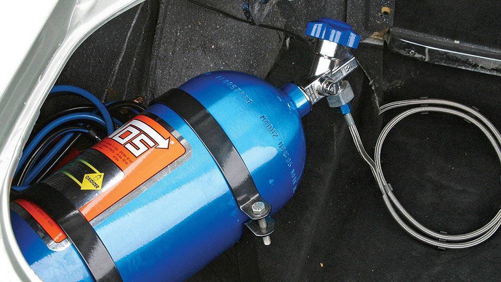 Автомобильная закись содержится в баллоне под давлением. Когда она подается в мотор, она представляет собой очень холодный газ, который охлаждает систему впуска, увеличивает плотность и дает еще больше кислорода. Количество этого газа контролируется жиклерами. От них зависит и уровень дополнительной мощности.