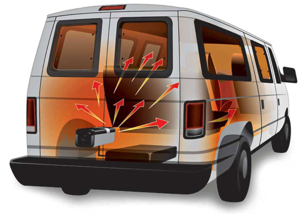 Это наиболее простая и дешёвая установка, монтируемая непосредственно в салоне. Действует как тепловой вентилятор, ну или можно сравнить с феном, только энергия поступает не из сети, а подаётся из бака с жидким топливом.