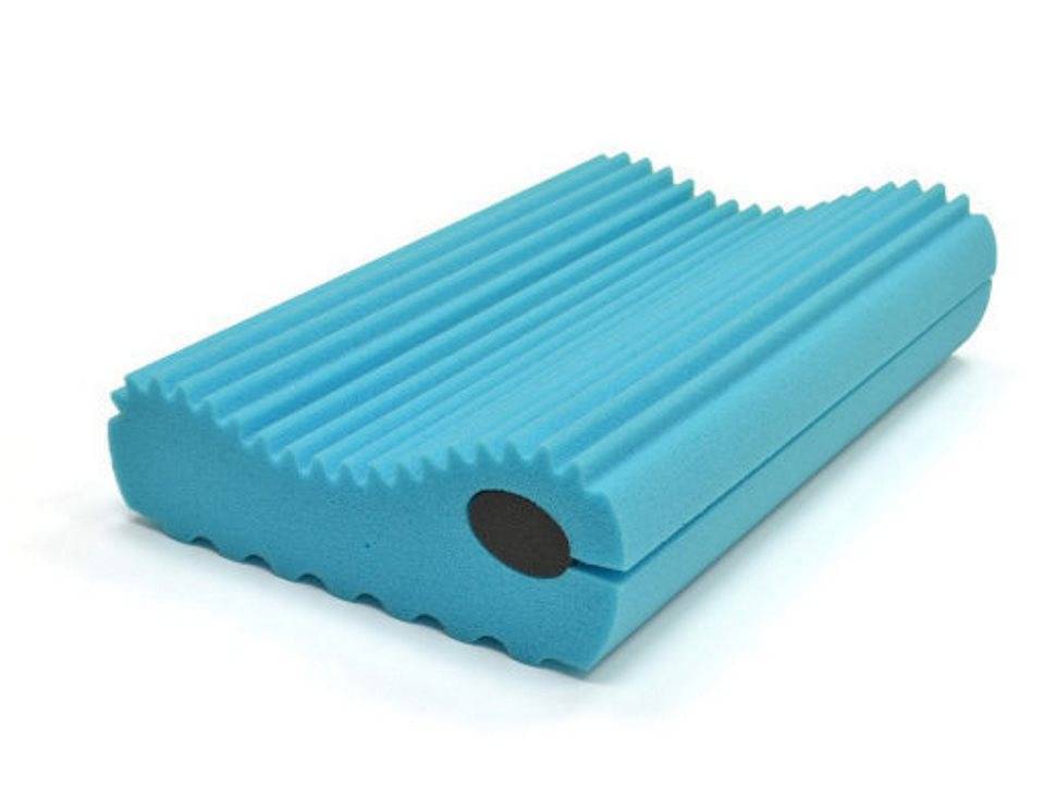 Ортопедическое изделие с памятью. Форма анатомическая. Материал полностью повторяет изгибы головы и шеи. Конструкция состоит из двух эргономических валиков, отличающихся высотой. Один валик можно отрегулировать по высоте благодаря наличию съемного элемента. Воздухообмен отличный благодаря двусторонней ребристой поверхности. Производитель в качестве наполнителя использовал пенополиуретан. Страна-производитель – Россия.