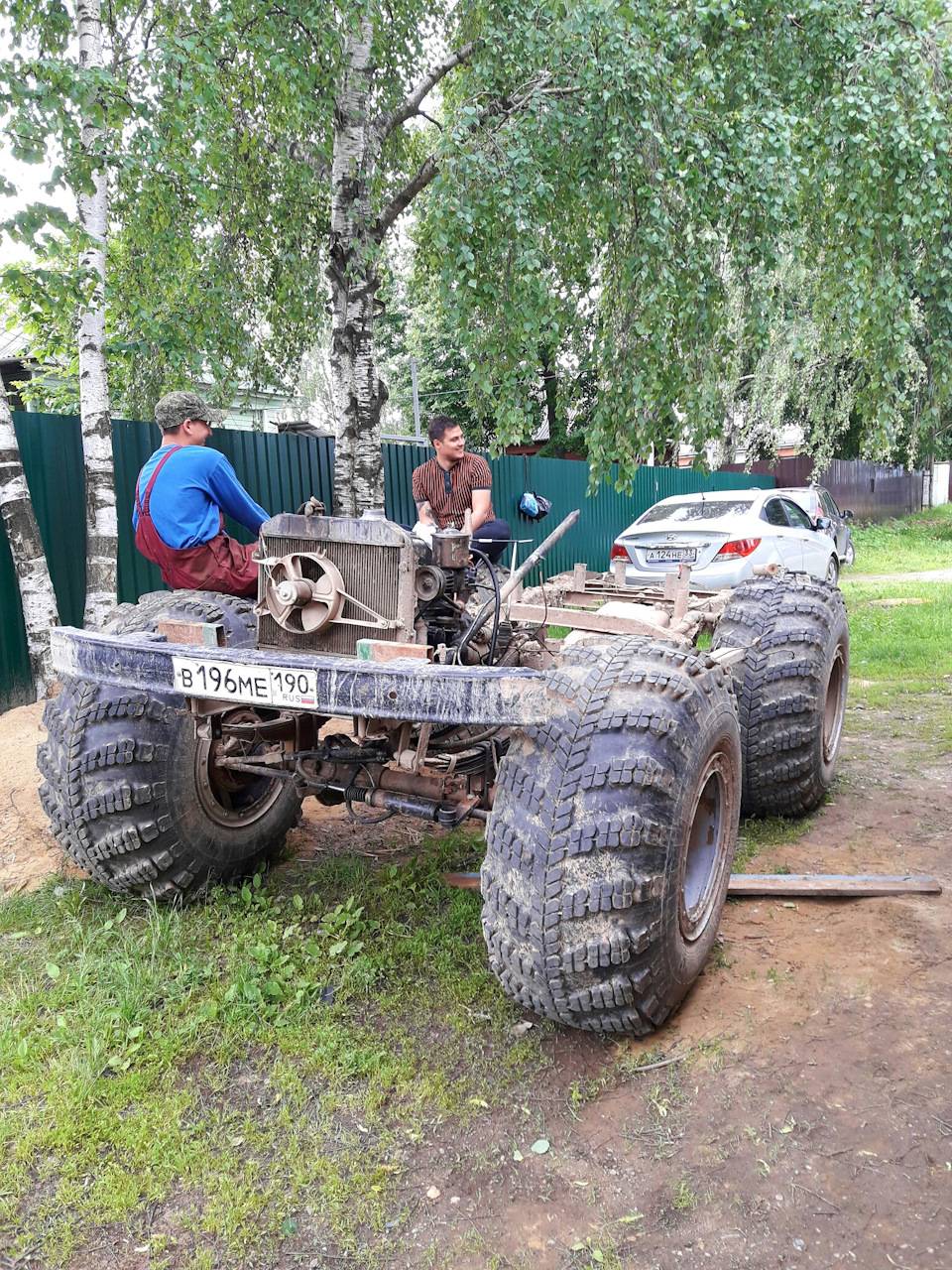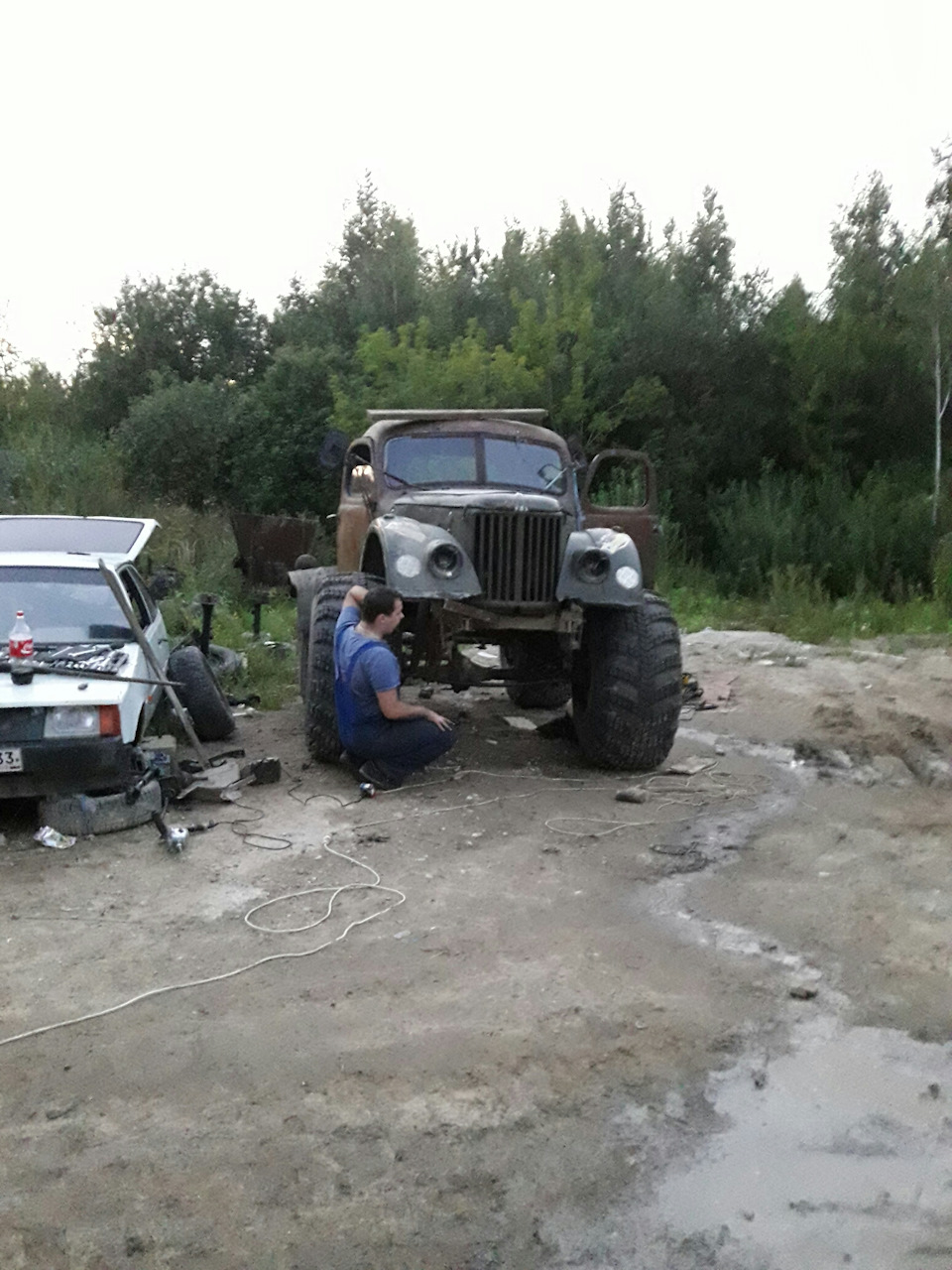 Уважаемые посетители сайта «Самоделкин друг» сегодня мы с вами рассмотрим болотоход-вездеход необычной компоновки и конструкции собранный Artemgr 33 из Владимирской области своими руками. Кабина от легендарного Советского грузовика ЗИЛ-157. Пошаговые фото сборки прилагаются, а так же видео с испытаний вездехода. Данный вездеход на шинах низкого давления был собран первоначально на базе Советского внедорожного автомобиля ГАЗ-69 с небольшими доработками. Но в дальнейшем после очередных покатушек по бездорожью у машины лопнула рама и пришлось снять кузов.. в этот момент автору пришла в голову идея о создании более интересного вездехода с кабиной. Вариантов первоначально было много, тоесть какую кабину поставить от ДТ-75 или ГАЗоновскую, но в идеале было найти от ЗИЛ-157 «Захар» По объявлению был найден старенький ЗИЛок продававшийся на запчасти, незамедлительно автор выехал на место и сняли кабину с рамы, конечно состояние было ужасное и за долгие годы от кабины осталось только название, но все же лучше чем нечего и после реставрации она была установлена на вездеход.