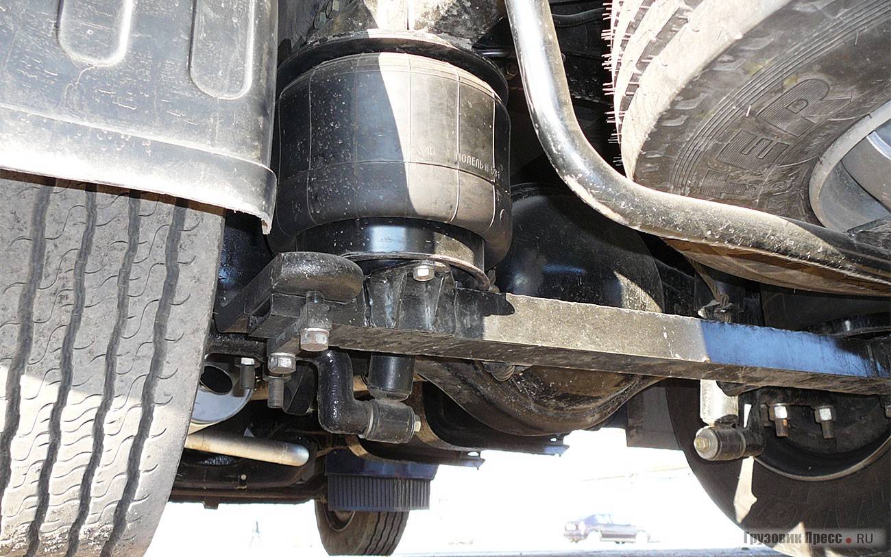 Так, базовой комплектацией считается пневмоподвеска заднего моста с деформируемыми рычагами и ограничителями поперечного смещения, дополненная амортизаторами. Это сделано для того, чтобы при необходимости можно было изменять величину дорожного просвета. Хотя как опция возможна установка и рессорной подвески. Кстати, в рабочем положении расстояние между дорогой и креплением амортизатора всего 180 мм.