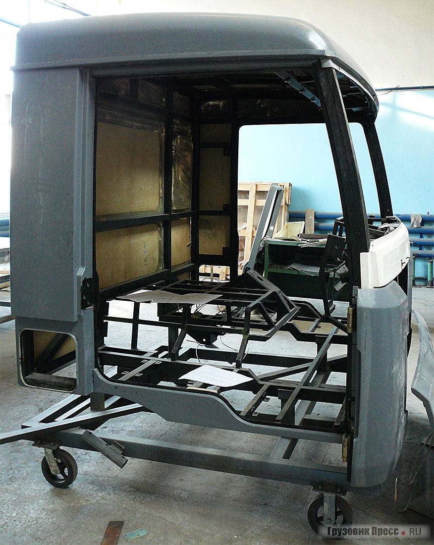 Первая кабина была изготовлена простым перепиливанием из «газоновской». Получилось так себе. Второй вариант изготовляло известное в российских автомобильных кругах ателье «Буран-Стайлинг». В результате на свет появились две кабины, установленные на 2-й и 3-й образцы шасси. По многим параметрам они не устроили заказчика. Именно тогда и возникло решение изготовить каркасно-панельную кабину самим. Что получилось в итоге, вы видите на фотографиях. Кстати, она заняла место одной из «бурановских», и из-за этого пробег шасси тестируемого автомобиля уже около 20 тыс. км, а кабины – в 10 раз меньше.