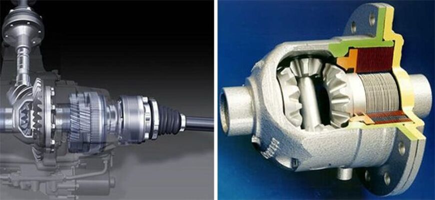 Одним из неотъемлемых узлов трансмиссии является дифференциал. Он предназначен для того, чтобы при повороте колеса могли вращаться с разными угловыми скоростями, так как они (правое и левое) при осуществлении такого маневра проходят разные по длине пути. На некоторых автомобилях предусмотрена блокировка дифференциала с помощью интегрированной в него вискомуфты.
