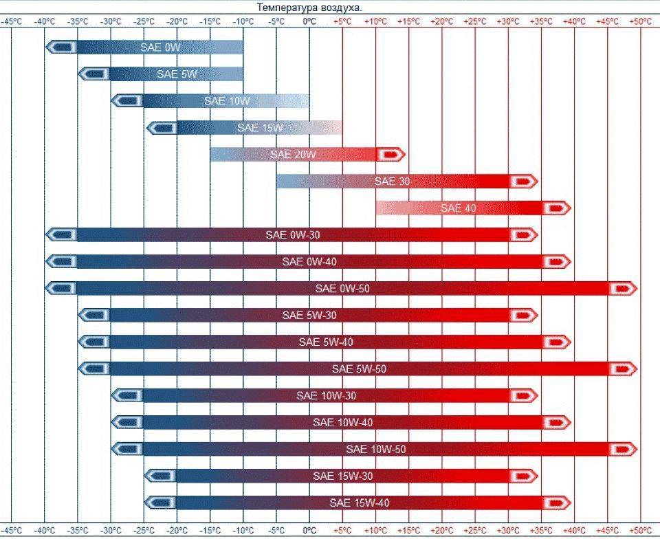 | Марка вязкости по SAE | Расшифровка – температурный диапазон, °С |