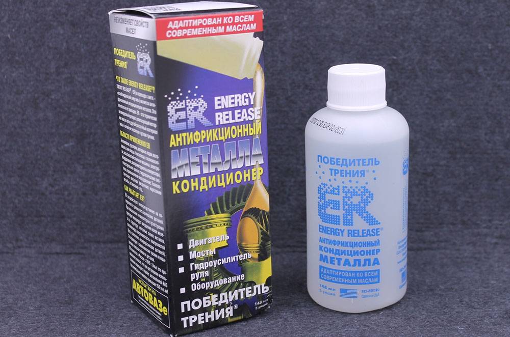 - Кондиционеры металла. Прозрачные смеси, способные уменьшить силу и температуру трения при трибологическом контакте деталей. Минусы: продукция вредна для экологии, ее использование запрещено во многих странах.