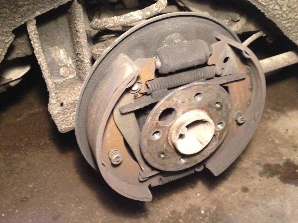 Барабанный тормоз представляет собой специальный вращающийся барабан, который останавливается посредством воздействия на него тормозных колодок.
