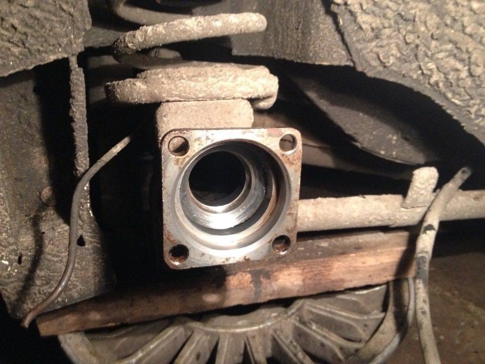 - Выбивайте изношенные шпильки из ступицы и монтируйте новые. После устанавливайте проставку с проточкой на внутренней стороне. Монтируйте проставку таким образом, чтобы проточная часть была установлена по отношению к суппорту.