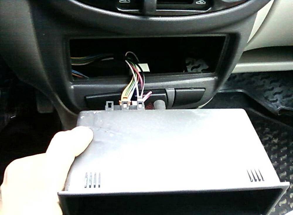 Отключение магнитолы. Устройство извлекается полностью, после предварительного отсоединения идущих к нему проводов.