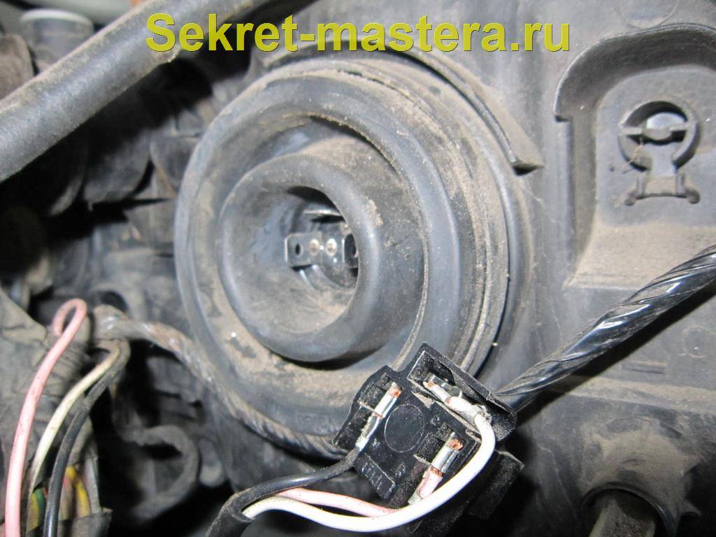 Предусмотренная длина лампочки в этой модели — 82 мм. В корпусе фары есть штатные выемки, в которые должны входить металлические язычки, расположенные на цоколе. Это обеспечит оптимальное положение детали относительно рефлектора и рассеивателя.