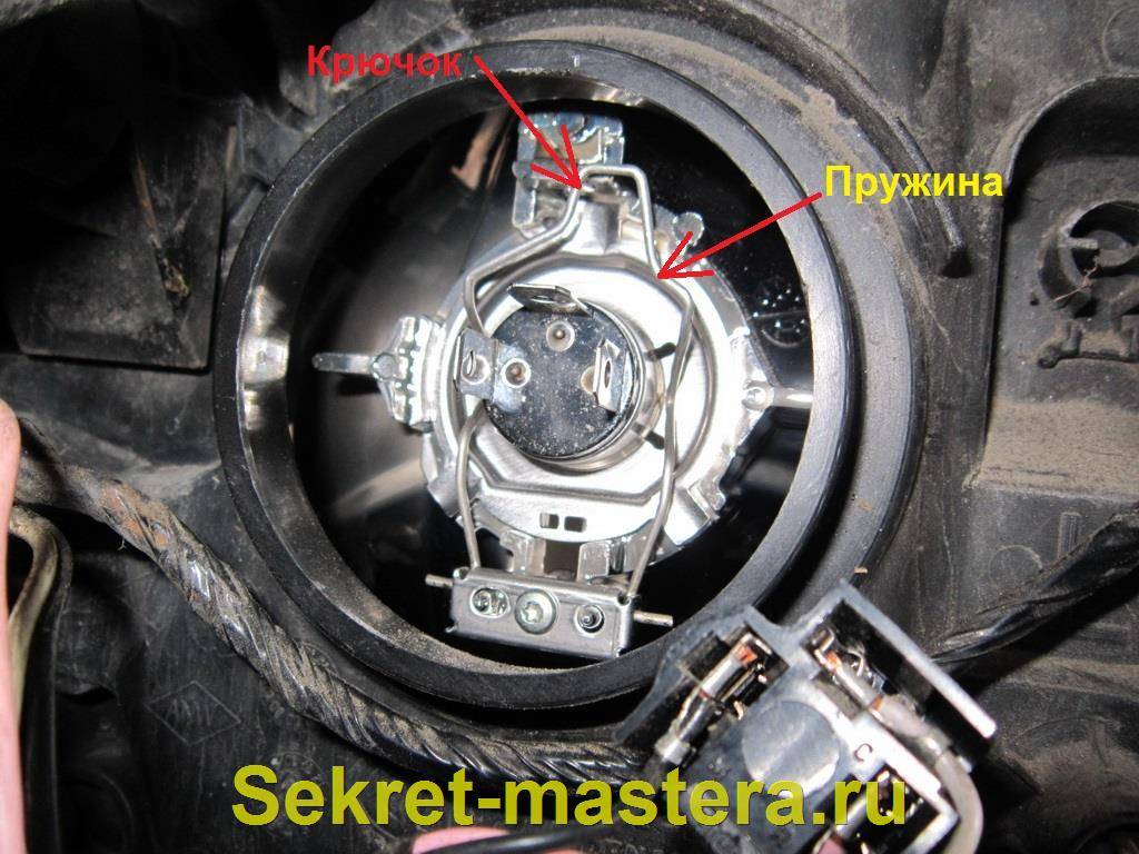 Расположение пружинного фиксатора лампочки