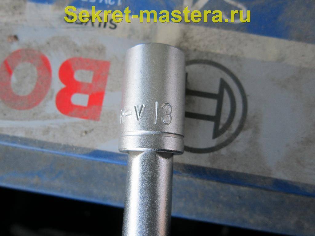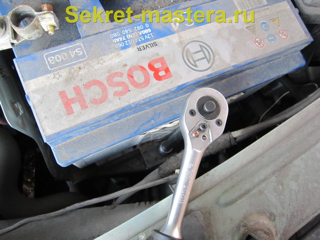 1. Для демонтажа аккумулятора потребуется два ключа на 8 и 10, для съема клемм с аккумулятора, и накидная головка на 13 для съема планки крепления аккумулятора.