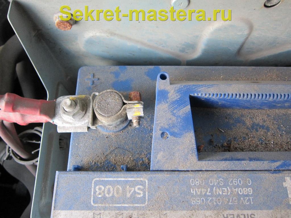 2. Сначала откручиваем своими руками крепление клеммы массы! А потом снимаем клемму «+».