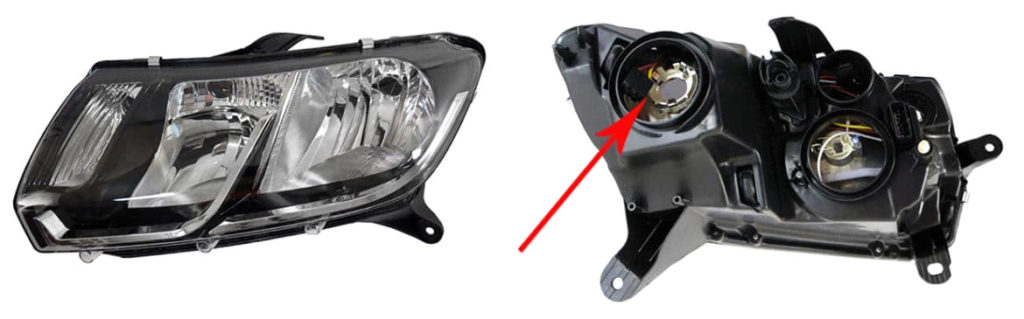 Место расположения патрона лампы ближнего света в фаре Logan 2