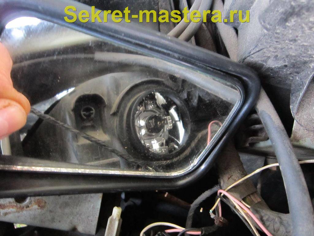 С левой фарой поступаем аналогично. Щель там, правда, несколько уже, но средней руки (в буквальном смысле) человек вполне с задачей справится.