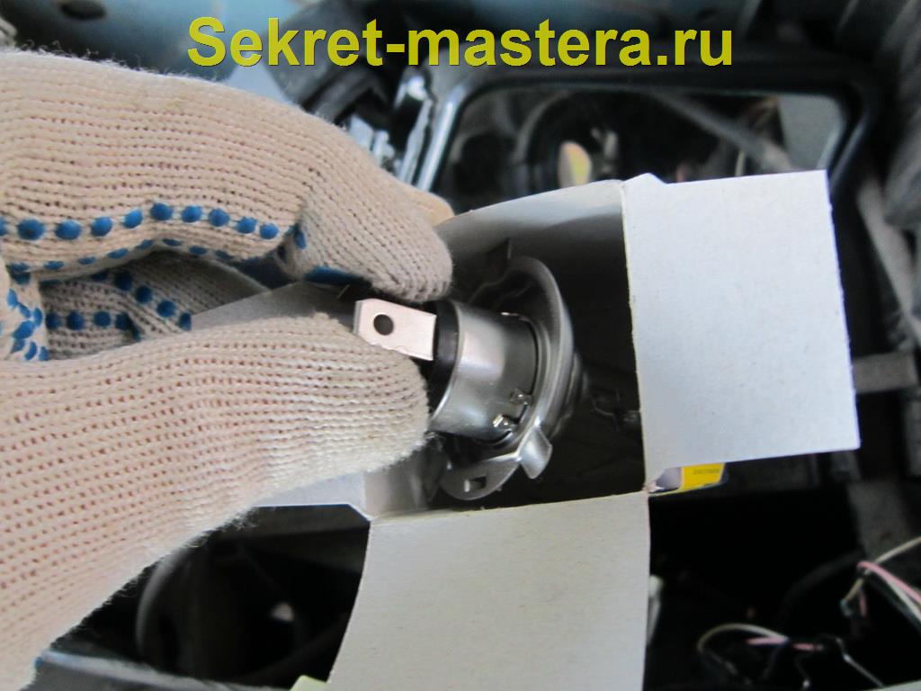 Взять лампу с соблюдением мер предосторожности и установить на штатное место.