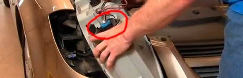 Аккуратно извлеките из проема фару, примерно на 10-15 см и отсоедините подходящие к ней жгуты с проводами. Вы увидите перед собой два жгута, один из которых подходит к указателю поворота, он расположен ближе к внутреннему от кузова углу фары, а второй жгут предназначен для питания всех остальных элементов фары и располагается внизу, в середине корпуса фары, прямо под корпусом корректора, который выступает из фары.