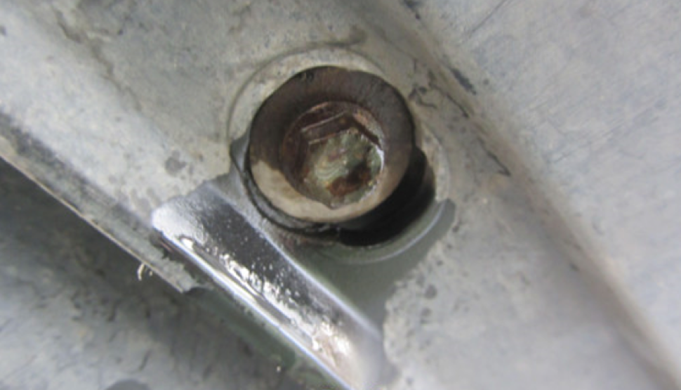 Для демонтажа защитного элемента рампы вооружаемся головкой на 13 с удлинителем и откручиваем две гайки через каналы в защите.