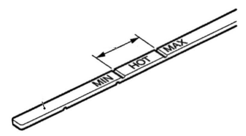 - Меряем уровень жидкости, он должен быть в пределах «MIN» и «МАХ» на указателе, если меньше, то доливаем жидкости.