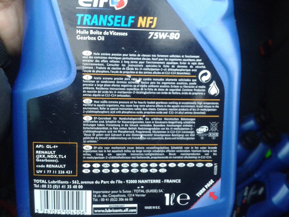 На конвейере в МКПП завод-изготовитель заливает Elf Tranself NFJ 75W-80, которое Renault рекомендуем для КПП серий JXX, TL4 и NDX.