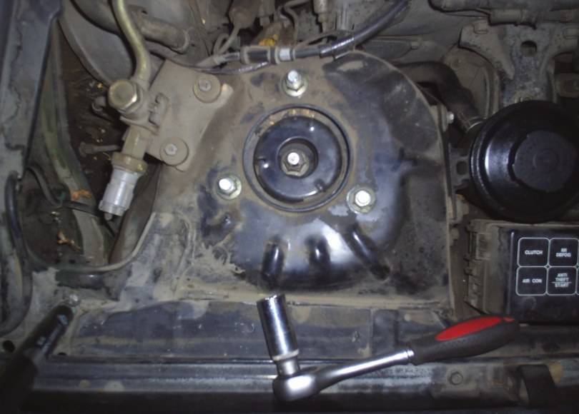 С передними амортизаторами пострадали чуть больше: пришлось откручивать своеобразную чашку, где есть опора, потому что без этого амортизаторы просто не снимать.