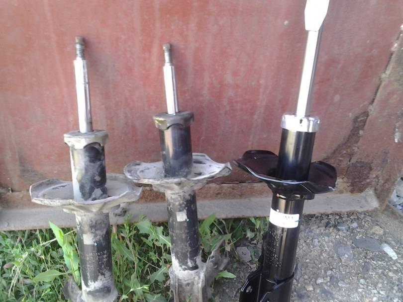 Передние немного выше по длине и имеют меньший диаметр. Поворотные кулаки в конструкциях задних амортизаторов полностью отсутствуют. Кроме того, заменить задние стойки намного сложнее, чем передние.