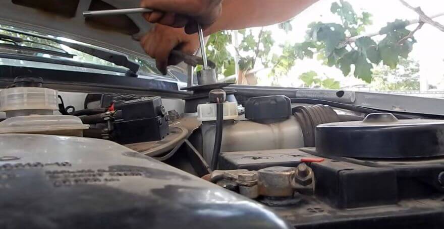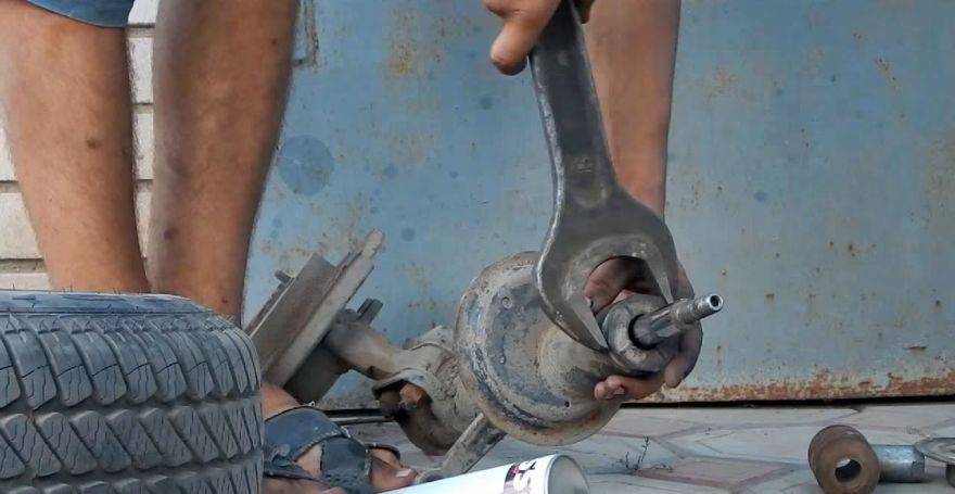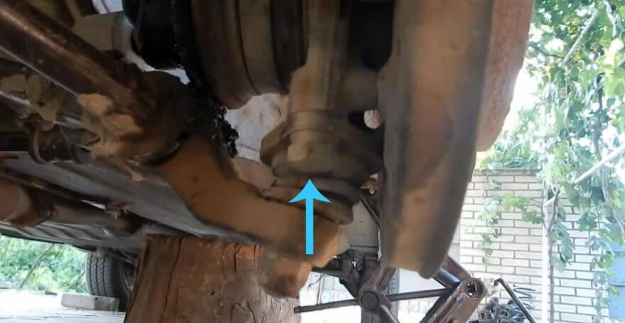 - Открутите гайку крепления тяги с помощью гаечного ключа 19 мм.
