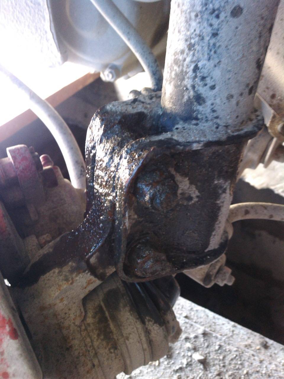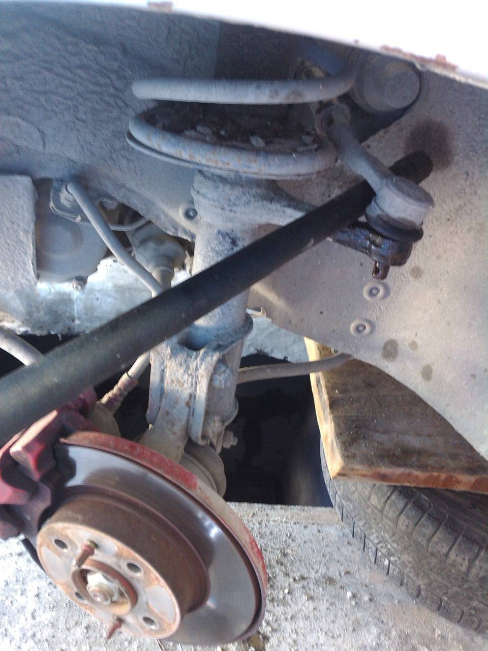 Дальше все в обратном порядке…Стяжки с пружины снимаемКрепим стойку к чашке, на 3 гайкиАккурат собираем нижнюю часть ( кулак и регулировочные болты)Покрутили колесо, убедились что вал на местеШланг тормоза на место.Пыльник в окне рулевой ( заменить если надо)Собрали рулевой наконечникКолесо.Итог: