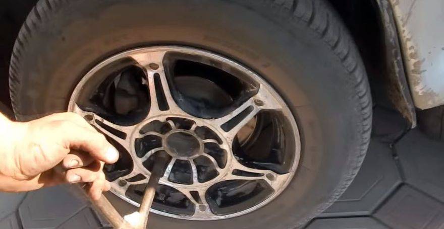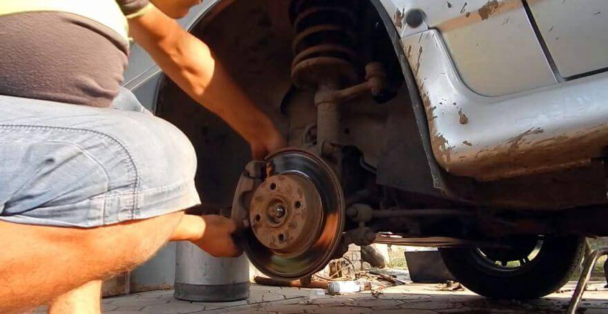 - Снимите те колеса, где вы планируете менять стойки. Порядок замены не играет большой роли, то есть можете начинать как с левого заднего, так и с правого заднего колеса;