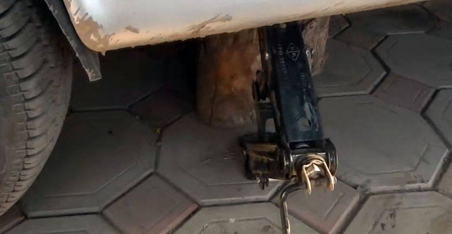 - Поднимите задний мост и обязательно поставьте под колеса какие-то стопоры, чтобы вдруг машина не соскочила с домкрата;