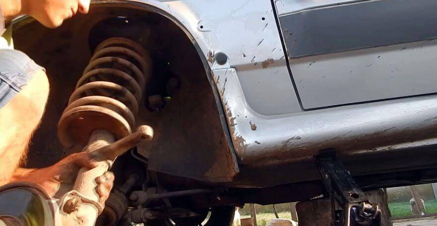 - Выворачивая элементы поворотного кулака, аккуратно извлекайте вашу старую стойку через арку;