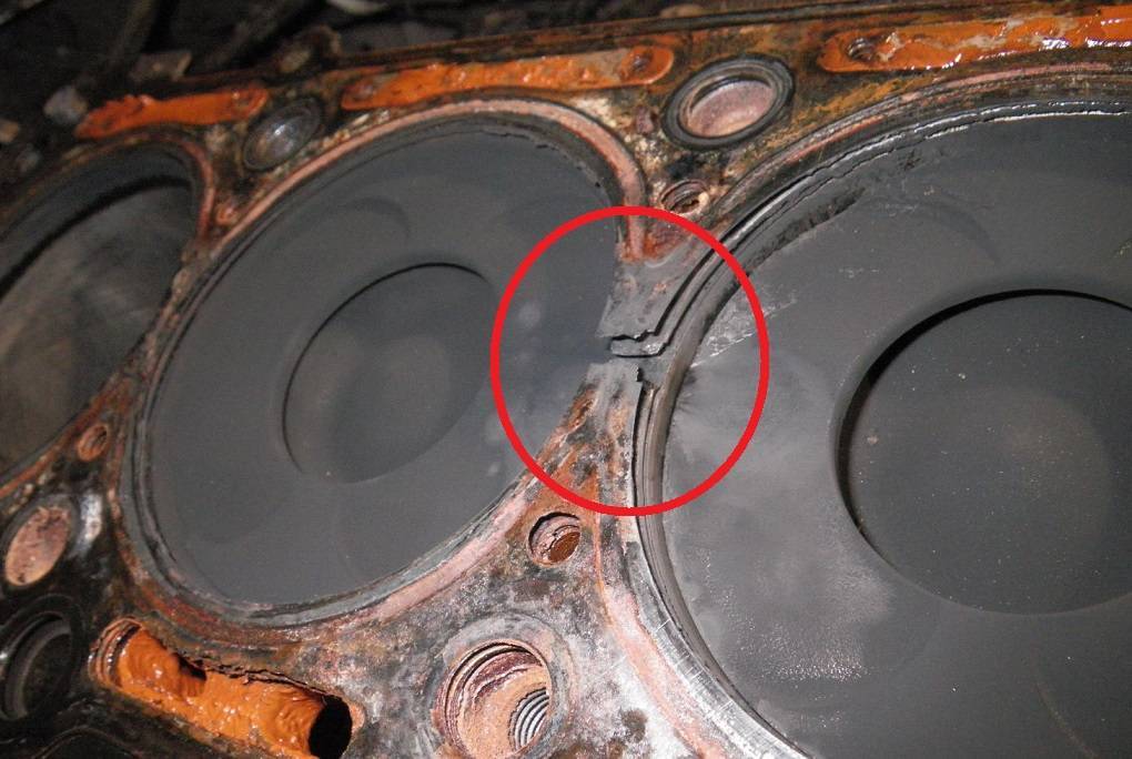 Визуально можно увидеть следующие признаки повреждения прокладки ГБЦ:
