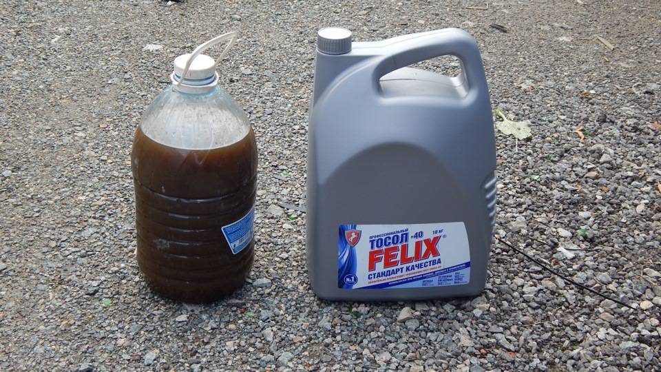 Осенила мысль: поскольку зимой не езжу, нужно просто отключить печку. Сказано-сделано. Для отсоединения патрубков печки необходимо слить охлаждающую жидкость. Поскольку жидкость менял осенью 2013-го, а пробега нет и 10 тыс., сначала хотел использовать ее повторно, потому что по регламенту замена жидкости производится через 3 года или через пробег 60 тыс. км., что раньше произойдет. Однако слитая жидкость оказалось настолько грязной, что пришлось ее заменить.